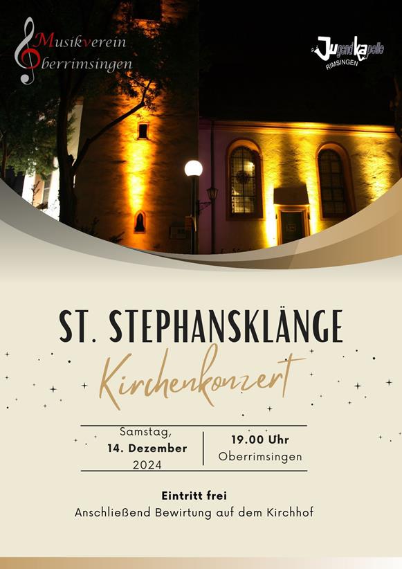 Am Vorabend des dritten Adventes präsentierten die Jugendkapelle Rimsingen zusammen mit dem Musikverein Oberrimsingen das Kirchenkonzert St. Stephansklänge. Die ehrwürdige Pfarrkirche St. Stephan in Oberrimsingen war bis auf den letzten Platz besetzt.