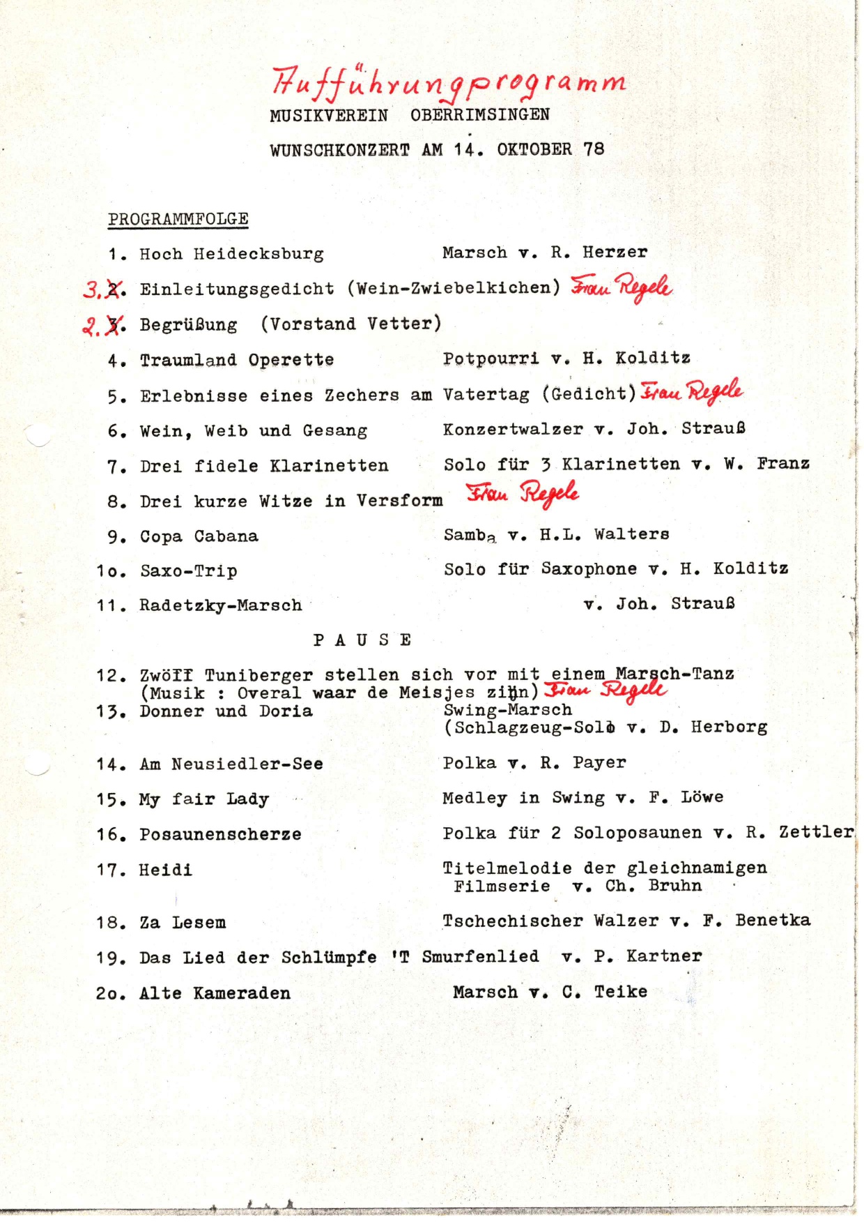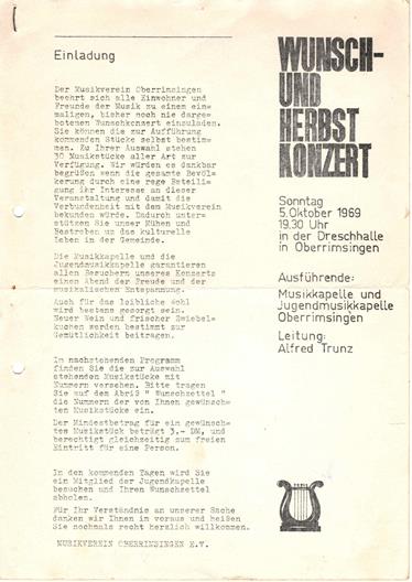 Das Wunschkonzert bildete viele Jahre den musikalischen Höhepunkt des Musikvereins und wurde 1969 zum ersten Male durchgeführt. Anfangs war es immer im Herbst und seit 2003 wurde es auf den Frühling verlegt.