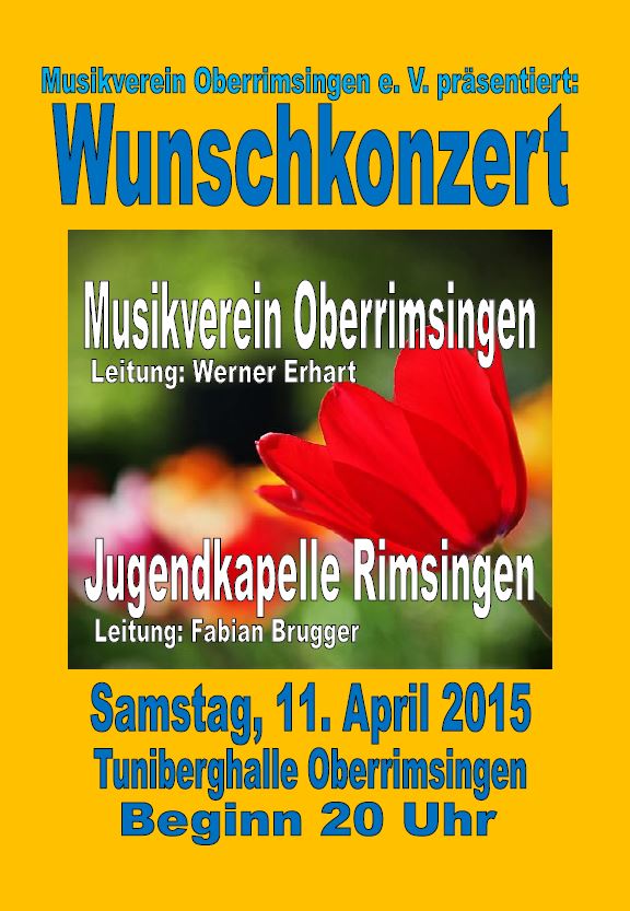 Der Musikverein veranstaltete sein Jahreskonzert in der Tuniberghalle in Oberrimsingen. Als besonderer Anlass wurde dieses Jahr das traditionelle Wunschkonzert wiederbelebt.
